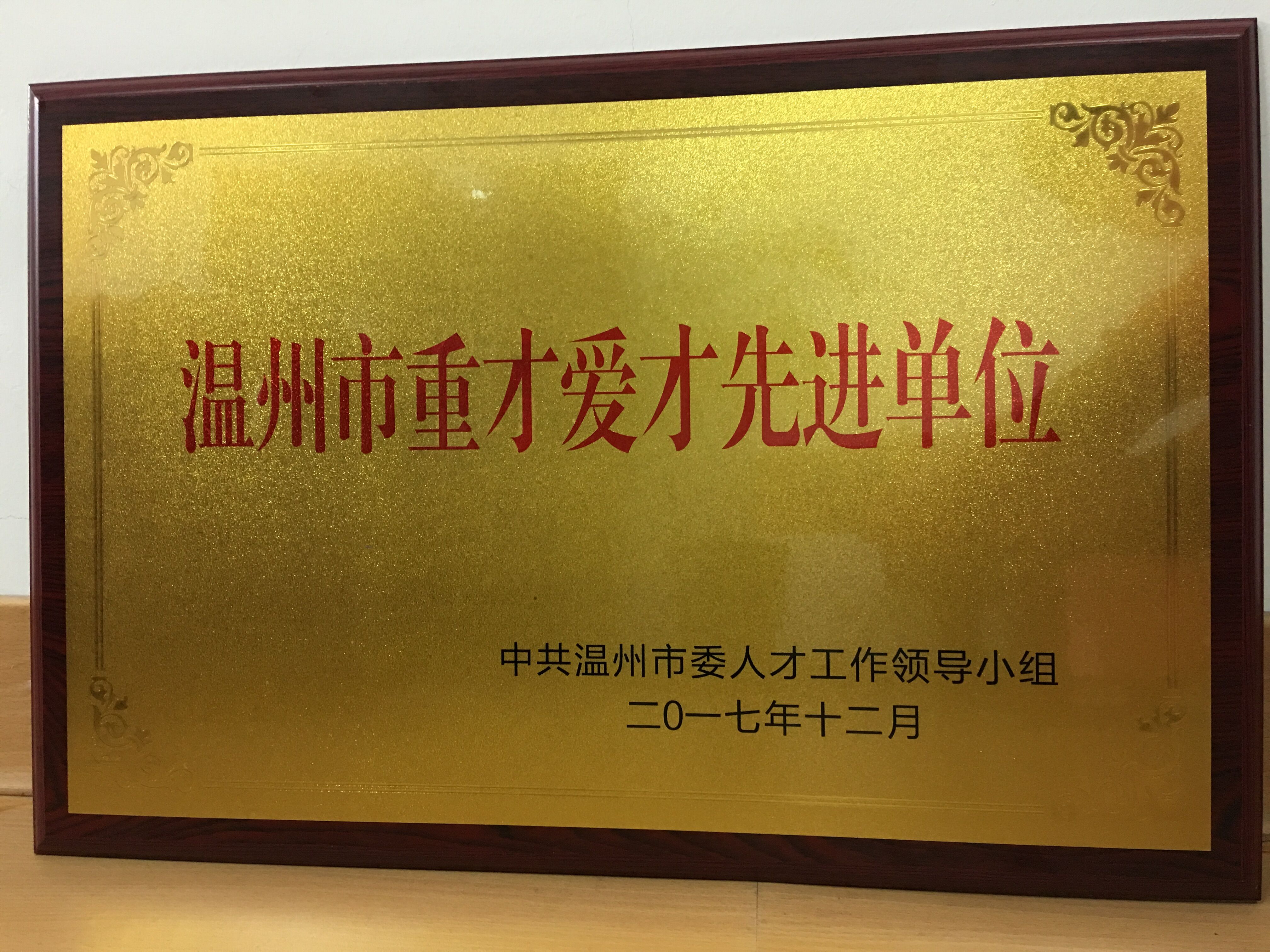我院荣获温州市重才爱才先...