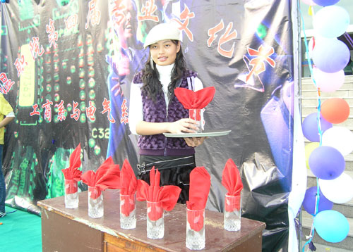 工商系学生在专业竞技秀上展现“折餐巾”技能