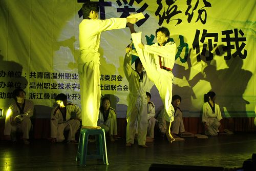 从吉他协会一曲动人抒情的歌曲《结束后才明白》开始,整个晚会在一声声的欢呼与一阵阵的掌声中不断升温,跆拳道协会的道舞与特技引来全场惊叹;会计协会的哑剧让全场爆出笑声;交谊舞协会的《朦胧之恋》演绎的亦真亦幻;心理协会教会我们《跳出枷锁》;街舞协会的超炫舞技震撼全场;国贸协会的一曲《真的爱你》带来了不一样的感动;最后,竹韵协会以一曲二胡曲《赛马》为晚会画上了圆满的句号。