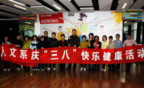 3月4日下午,人文系全体女教职工来到新城百盛健身会所,开展了包括体能测试、形体训练、器械练习在内的一系列健身活动。该活动立刻得到了该系35位女教工们的响应,他们相约在健身馆里度过了一个健康而快乐的下午。这些平日里埋头苦干的女教师们,在健身场上一个比一个迈力,一个比一个玩得起劲。一个个富有节奏跳动的身影,一幅幅汗涔涔的笑脸,把这个“三八节”倡导的健康主题深刻诠释了出来。有女教师表示,通过健身活动,增进了同事友谊,促进了系部和谐,达到了强身健体、舒缓工作疲劳的目的。