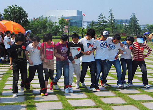 活动以游戏的形式开展,由各系心理委员分别以系为单位组成的队伍参加比赛。同学们在信任之旅赛跑、10人11足、坐人椅等一些活动中充分体会到一个团队相互信任、相互依靠和团队凝聚力的重要性,活动让同学们在积极参与中收获了快乐。