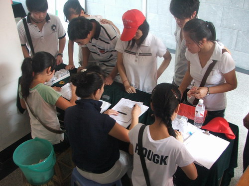 经过严格的考核与筛选,电气系自动化0703施成芬、电器0702张晓雷、电子0702潘林丽、计控0701黄帆等十位同学幸运地成为第一批新生班级的“党代表”。9月6日白天,在如火如荼的迎新活动中,可以看到他们挥汗如雨的身影;9月6日晚上,他们不辞辛劳参与新生班级第一次主题班会,特别介绍党团知识、新中国的建设历程、我系学生党员发展的基本程序与活动特色;9月7日晚上,他们随同辅导员老师及新生班主任助理,一同走访新生寝室,看望叮嘱新生,特别吩咐H1N1防控措施与汇报制度;9月8日晚上,他们激情昂扬引领新生班级同学,排练歌唱党与祖国的革命歌曲,为即将到来的“新生红歌会”做充分准备。
