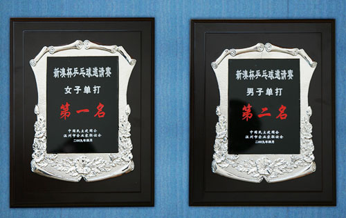 4月12日,我院民建会员教师徐学慧、林永贵两位老师在民主建国会温州市委员会、温州市企业家联谊会组织的“新澳杯”乒乓球邀请赛中表现出色,徐学慧老师勇夺女单第一名,林永贵老师凭借良好的发挥,杀入决赛,最后荣获男单第二名。