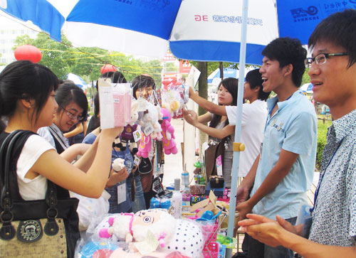 据悉,本次草根创业街两天的营业总额均超万元,其中,日常用品类、电子类和服饰类产品最受学生欢迎。来自19号摊位“妞妞学生铺”的李豪、郑思同学和来自27号摊位“新饰觉学生铺”的卢光、徐舰舰同学,分别以903元与950元的日营业额,分获23、24日当天的创业之星奖。
