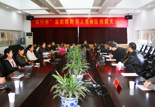 为了提高我院财务人员的技能水平,促进岗位练兵,不断提高业务素质,11月27日下午,“农行杯”温州职业技术学院首届财务人员技能比赛在学院三楼会议室举行。