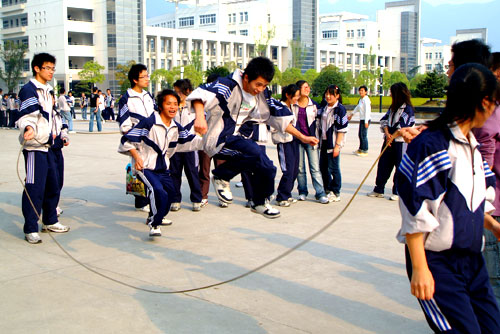 据悉,此次民俗传统体育运动会为期一个月,共设置了22个传统运动、游戏项目,这些项目都是融竞技与娱乐为一体,融时尚体育与传统运动为一体,融体育赛事与公益性社会体育活动为一体,既满足了广大青年的健身要求,又引领了青年体育时尚,受到大学生们和校园中青年教工的欢迎和喜爱。在盛大的开幕式现场,人声鼎沸,共有2000多名学生参与其中,共同享受了校园民俗体育所带来的快乐。记者看到,在享受快乐体育过程中,许多辅导员老师也参与到学生们的活动中,工商系辅导员林祯乐和学生一起玩起了八字绳,几位开会路过的女教师一头扎到“转呼啦圈”的现场,当起了“孩子王”,还不断地教着学生“打转”的心得。老师们脸上没有了以往的严肃,也和大学生们一样多了一份童心。策划此次民俗运动会的温职院工商系党总支书记蔡后界说:“策划举办这样的运动会,主要是想让青年学生们在活动中能够体会到传承文化、回归童真、快乐健身的真正内涵,从而在校园中形成新的运动文化品牌。”