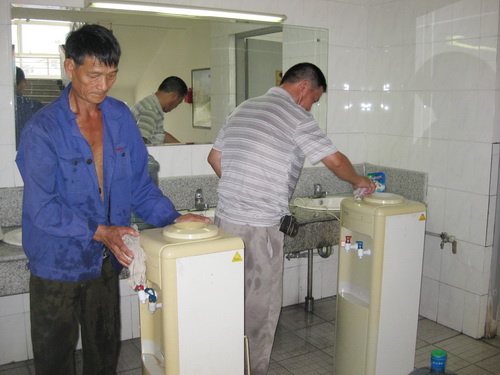 为确保新学期卫生安全,商贸中心送水站连同医疗中心成立卫生清洗、消毒小组,对学院行政楼和教学楼的所有饮水机和电话机进行卫生清洗和消毒。