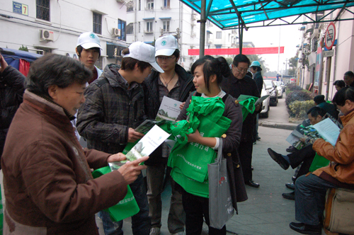 在社区里,同学们拿着宣传资料向社区的居民讲解关于《温瑞塘河保护条例》,并分发了带去的环保袋希望居民能在日常生活中做好环境保护。社区的居民对此次活动十分配合,都认真的看了宣传资料,有部分居民还填写了温瑞塘河保护管理条例问卷调查。