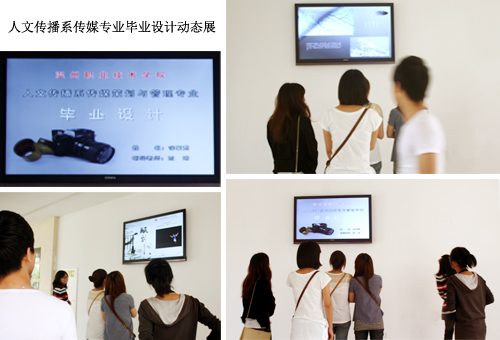 本次传媒策划与管理专业毕业设计动态展,有别于以往的毕业设计展,不再仅仅是传统KT展板的展览方式,而是将更加现代化且效果更加突出的液晶电视显示屏作为本次毕业设计展的展示平台。采用液晶电视显示屏作为动态毕业设计展的平台,不仅能将毕业生精心制作的画册配上优美的音乐,使得原本平面的画册变得更加生动立体,同时,也可以将传媒专业毕业设计中的影视视频作品也加入到展示的行列中,丰富了毕业设计作品展的内容,更好、更全面地展现了同学们毕业设计作品的风采。毕业设计动态展所呈现的精彩作品,吸引了过往的同学驻足欣赏,成为了人文传播系一道亮丽的风景线。