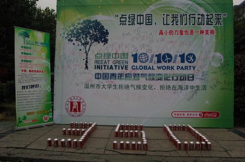 2010年10月10日,由温州职业技术学院建筑工程系发起的以“拒绝气候变化,拒绝在海洋中生活”为主题的温州市大学生环保行为艺术展在市区拉开。