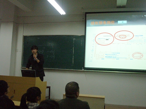 2010年11月17日下午,财会系分三个教室组织2008级专业实习经验交流会。本次参加经验交流汇报的同学是从9月份各班专业实习汇报会中择优选拨的,参加对象是2009级的所有学生。参加汇报的每一个学生都制作了精美的PPT,并结合自身的专业实习过程,畅谈了实习期间的工作经历和心路历程。他们向2009级同学提出,在校内实习中要“看着发票做业务”、“全面学习EXCEL”、“不要抄作业”等建议,在校外实习时要主动、勤快、细心,努力做到“嘴要甜一点,抱怨要少一点,动作要快一点,想法要少一点”。听完汇报的2009级同学纷纷表示,这次学哥学姐们的经验汇报对他们帮助很大,这对将来开展专业实习有着非常积极的指导意义。本次“以老带新”专业实习经验交流会,起到了很好的“传帮带”作用。