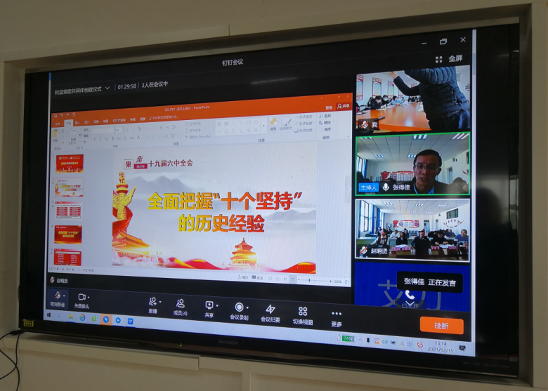 双方代表云签署《党建共同体创建合作协议书》,并开展第一场党建联学活动。两所学校相关负责人从不同角度,分别领学党的十九届六中全会关于“全面把握‘十个坚持’的历史经验”的内容,解析“十个坚持”的科学内涵、内在逻辑及重要意义。与会党员则结合自身工作实际展开讨论。