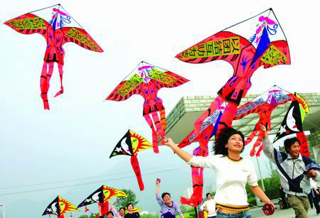 昨天下午,温州职业技术学院的大学生们把“八荣八耻”的内容写在风筝上,以放风筝的形式,学习“八荣八耻”。