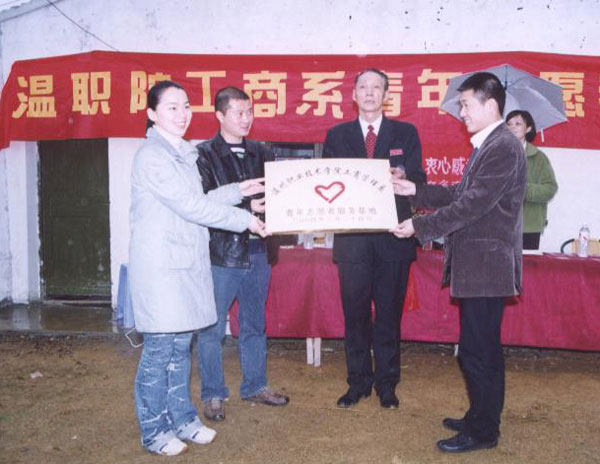 瓯海新桥外来民工子弟学校,有680多位来自全国各地务工家庭的孩子,由于家庭经济条件的限制,他们在学习和生活上比较吃力。温州职业技术学院学生采取赠送学习和生活用品、发放“爱心结对卡”等形式帮助他们,还教他们学习温州话、打篮球,并制定了长期帮扶计划。