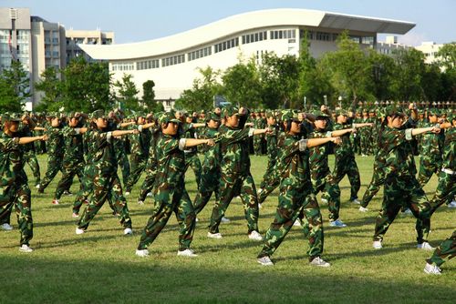 9月12日下午,我院在田径场举行2010级新生军训汇报表演。院领导倪集崇、夏晓军、兰玉景、王向红和温州军分区政治部副主任马跃光上校以及温州军分区海防营的军训教官们出席观看了此次军训汇报表演,副院长夏晓军主持了汇报会。