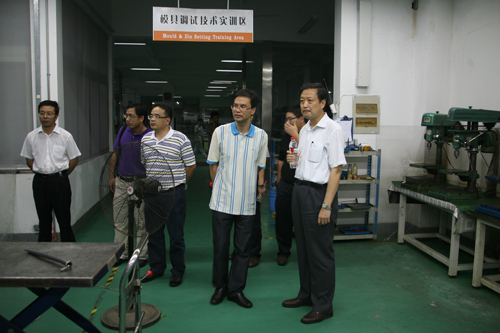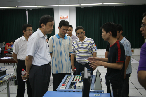 8月12日下午,在温州市教育局副局长戚德忠的陪同下,天津职业技术师范大学校长孟庆国带队考察了我院的生产性实训基地。丁金昌院长热情地接待了远道而来的客人们。